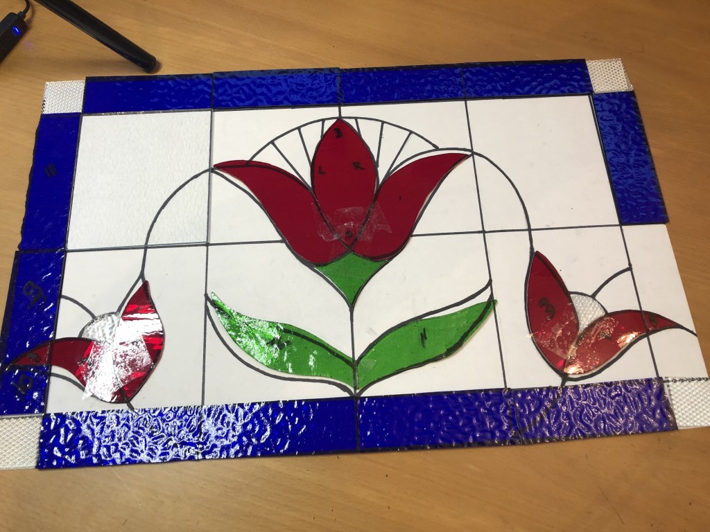 - het aantal verschillende stukjes glas (hoe verfijnder het ontwerp, hoe meer werk)